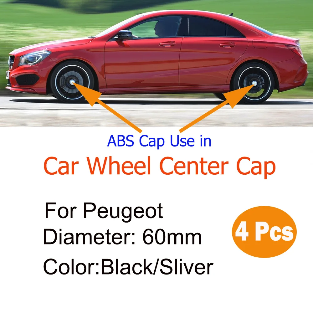 4 Pcs Car Wheel Center Caps Hubcap Rim Cover Protection 60mm Black Silver Logo Emblem for 107 206 207 307 308 406 407 408 508