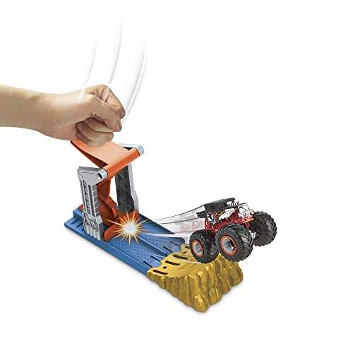 Hot Wheels Monster Trucks Launch & Bash Play Set with Launcher, 4 Crushed Cars, 1 1:64 Scale Monster Truck, Gift for Kids Ages 4- 8 Years Old - GVK08
