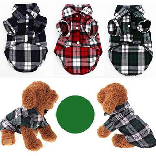 Whiie891203 - Vestiti per cani di piccola taglia per animali domestici, camicia a quadri con risvolto, giacca per gatti, abbigliamento per animali domestici, taglia S, colore: Verde