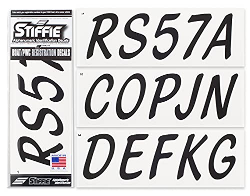 Whipline Solid Black/White 3 Alpha-Numeric Registration Identification Numbers Stickers Decals for Boats & Personal Watercraft by Stiffie