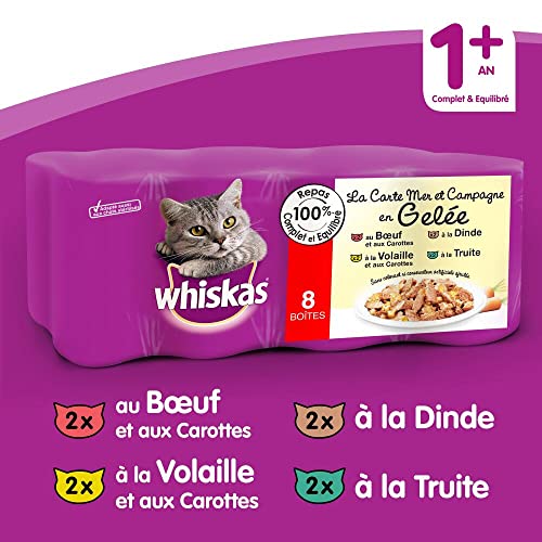 Whiskas La Carte Mare e Campagne - Scatole per 4 sapori in Gelatina per Gatti Adulti, 24 Confezioni da 390 g