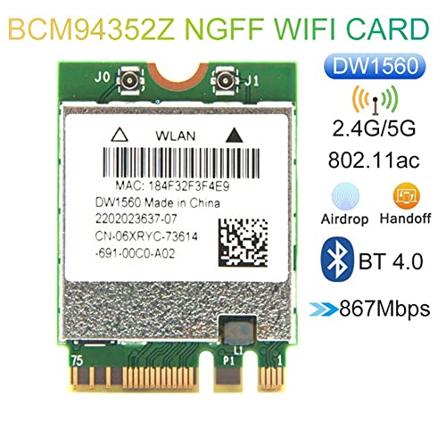 Whisverse BCM94352Z DW1560 M.2 Adattatore Wifi Scheda Wireless 1200Mbps 802.11Ac 2.4Ghz/5G Bluetooth 4.0 NGFF Card per OS