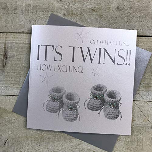 WHITE COTTON CARDS N 566,42 cm (223") Argento Booties, Scarpette Invernali da Bambino, Che Cosa Fun.It s Twins Modo Divertente! New Baby Biglietto Fatto a Mano, Gemelli