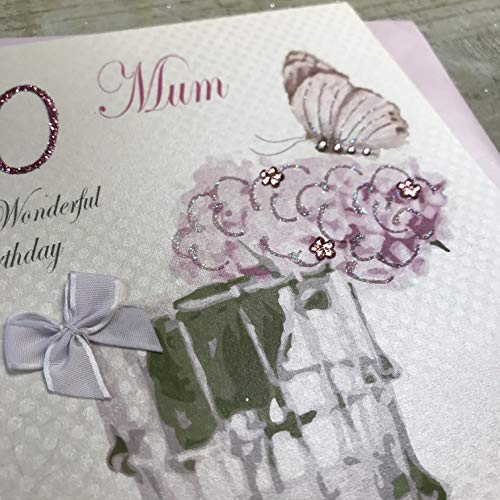 WHITE COTTON CARDS - Biglietto di Auguri, per 50° Anniversario della Mamma, Fatto a Mano, Scritta Inglese: Mum Have a Wonderful 80th Birthday, Colore: Bianco
