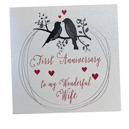 WHITE COTTON CARDS - Biglietto di Auguri Realizzato a Mano, per Il 1° Anniversario di Matrimonio, con Scritta To My Wonderful Wife, Colore Bianco