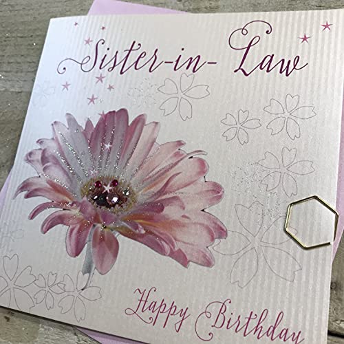 WHITE COTTON CARDS - Biglietto Fatto a Mano, con Scritta: Sister-in-Law Happy Birthday, Motivo di gerbere Rosa
