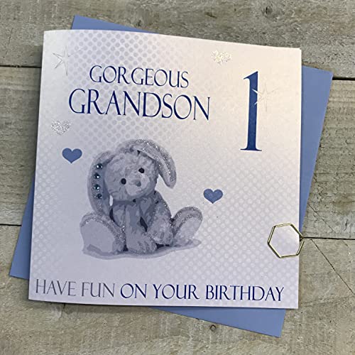 WHITE COTTON CARDS Code ngs1-b Blu Coniglietto Nieto 1 Have Fun on Your Birthday 1st Birthday Card