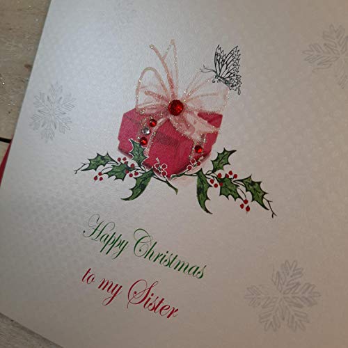 WHITE COTTON CARDS X123 - Cartoline Natalizie realizzate a Mano con Stampa di Pacchetto Regalo e Scritta Happy Christmas to My Sister, Colore: Bianco