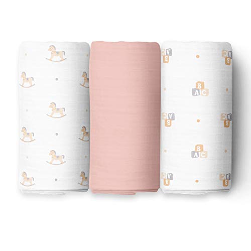 The White Cradle Copertina Swaddle - 100% cotone organico - Grande 112x112 cm, avvolgente per bebè in mussole super morbida. pacco da 3 pezzi per neonato - Disegno dell'orso rosa 3