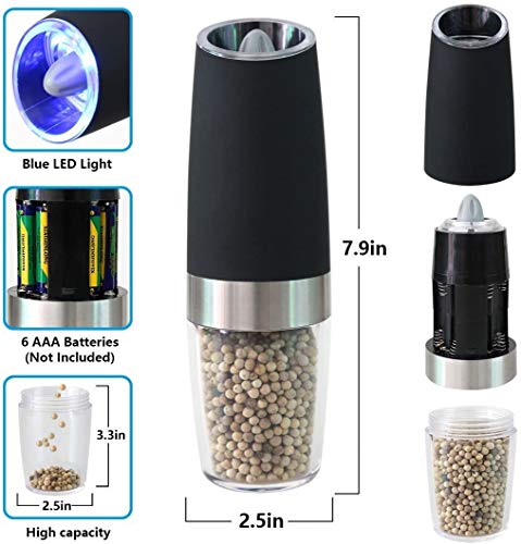 WHITE DEER Macina Pepe Elettrico Set, Set di Macinini Sale e Pepe, Sensore di Inclinazione a Gravità a 90 Gradi, Spessore Rettifica Regolabile, per Varie Spezie