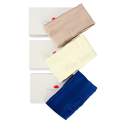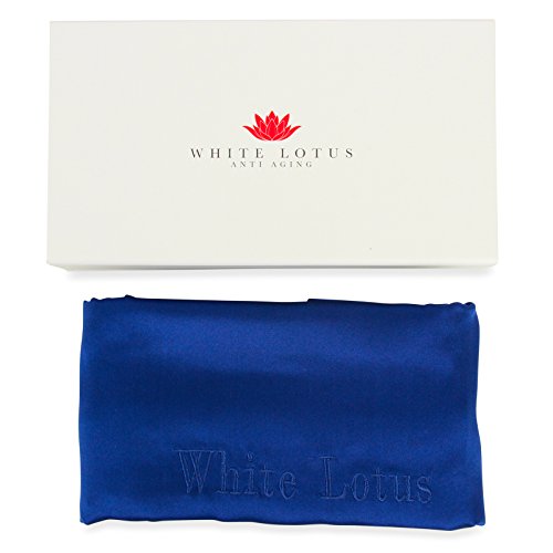 White Lotus Anti Aging Federa di Seta - Federa in Seta di gelso - con Lussuoso scatolo Bianco Avorio - Federa Seta Perfetta per Capelli ed Antirughe - Federa Cuscino Seta - Blu Navy