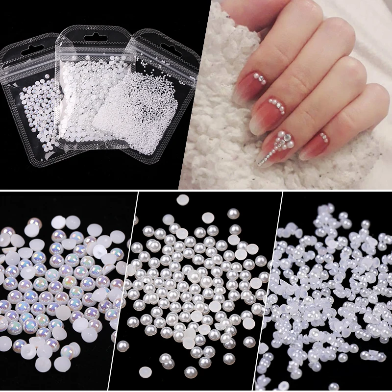 1 Bag White Round Flat Bottom Bead Rhinestones Crystal DIY Nail Art Decorations Tools Accessories