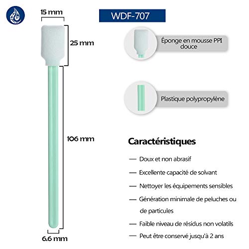 Whitedrop 100 PCS Whitedrop Tamponi per la pulizia della schiuma. Tamponi antistatici per la pulizia delle apparecchiature ottiche delle stampanti (WDF707) Testa rettangolare