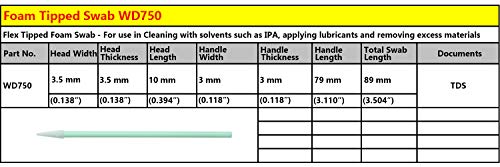 Whitedrop 100 PCS Tamponi per la pulizia della schiuma. Tamponi antistatici per la pulizia delle apparecchiature ottiche delle stampanti (WDF750) Testa a punta