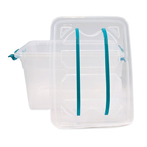 Whitefurze - Contenitore in plastica Trasparente, con Coperchio Sicuro, 13 l, Colore: Verde Acqua