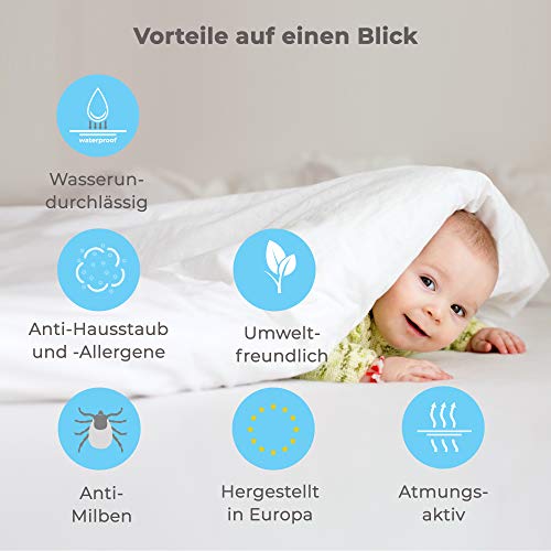 Allergico: protezione senza compromessi contro acari e polline. Il coprimaterasso senza crepitio (42 x 81 cm) protegge da batteri e allergeni ed è lavabile in lavatrice a 90 gradi.