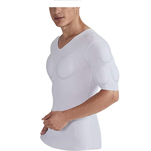 Whlucky Falso Muscolo Biancheria Intima Slim Fit Asciugatura Rapida Simulazione Muscolo Toracico Maglietta Abbinamento del Vestito Base Layer,White,l