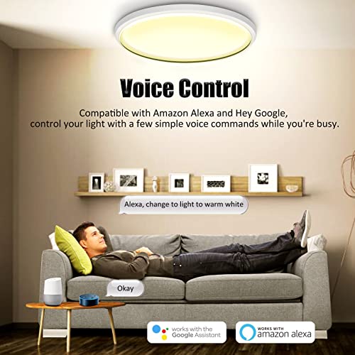 Wholede Plafoniera LED Soffitto Moderna, 24W Lampadario per Camera da Letto Ø30cm, Lampada LED Soffitto RGB Dimmerabile Con Telecomando Compatibile con Alexa e Google Home, Plafoniera Bagno Cucina