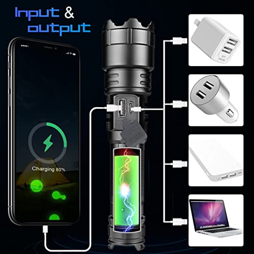 ✅Ricaricabile tramite USB e Batteria: la torcia più luminosa è alimentata da una batteria ricaricabile al litio 18650. Batterie da 3000 mAh integrate in questa torcia ricaricabile con ricarica diretta USB tramite power bank, adattatore per smartphone, computer (laptop) o spina di ricarica. Per la batteria aggiornata, non ti preoccupare che la torcia sia sovraccaricata e scaricata. 4 indicatori di potenza sulla torcia che mostrano il consumo di energia o la capacità di carica delle batterie.
