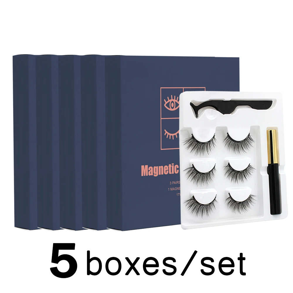 Wholesale 5 boxes/set 3pairs Magnetic Eyelashes Magnet Eyeliner Fake Eyelash Waterproof Liquid short lash Makeup tools
