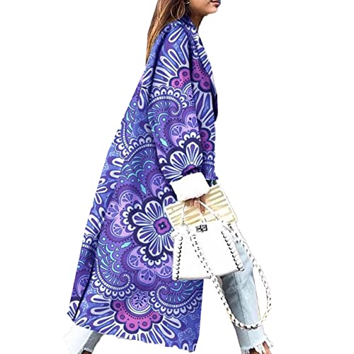 WHZXYDN, Autunno e Inverno Moda Colore Abbinato Bavero Stampa Digitale Giacca Cappotto di Lana Double Face Donna, L