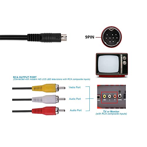 WiCareYo 1pcs AV Audio Video Cavo TV composito per Genesis Mega Drive 1 & 1pcs 6ft Audio Video AV Cavo 9 pin per Genesis Mega Drive 2 e 3