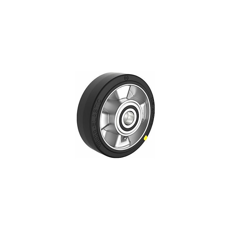 Ruota ESD, in gomma elastica, Ø x larghezza ruota 125 x 40 mm, Ø asse 20 mm. Fornitura = montato. Forma = ruota. Materiale ruote = gomma piena elastica. Materiale cerchioni = alluminio. Diametro ruote = 125 mm. Portata a 4 km/h = 250 kg. Larghezza ruote = 40 mm. Cuscinetti ruota = cuscinetto a sfera. Lunghezza mozzo = 50 mm. Diametro dell'asse = 20 mm. Durezza Shore = 63 Shore A. Tipo di prodotto = ruote ESD. Versione ESD, a conduttività elettrica. Portata elevata.