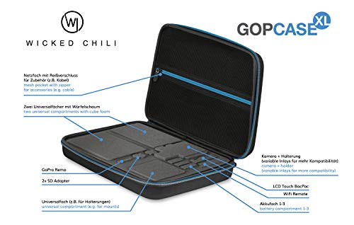 Wicked Chili GOP Case Compatibile con Rollei Actioncam 560, 550, 540, 530, 510 e 425 Custodia per Fotocamera, LCD e Accessori (con Maniglia di Trasporto e Scomparto con Cerniera)