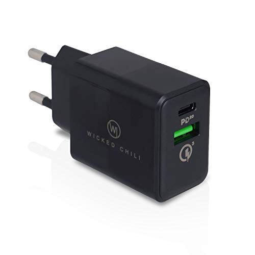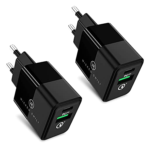 Wicked Chili Set di 2X 20W Dual USB Caricatore con connettore USB-A e USB-C, Fast Charge Adapter Bundle, Compatibile con iPhone 14, 13, 12, 11 (PRO, Max, Plus, Mini), Samsung e MagSafe