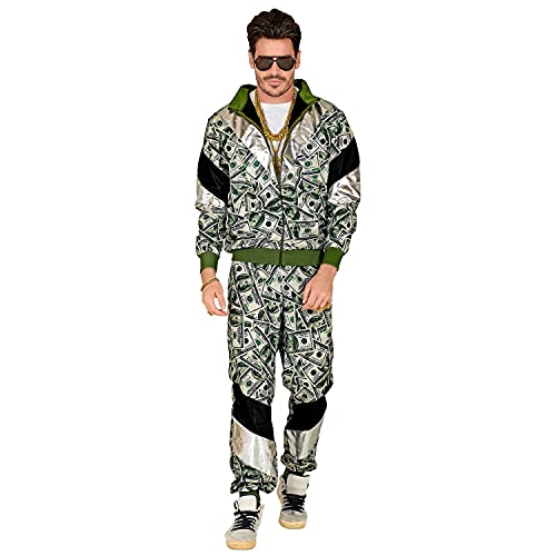 Widmann 11281 - Tuta da allenamento anni '80, giacca e pantaloni, comoda da indossare, banconote, tuta da jogging, stile retrò, per feste di carnevale
