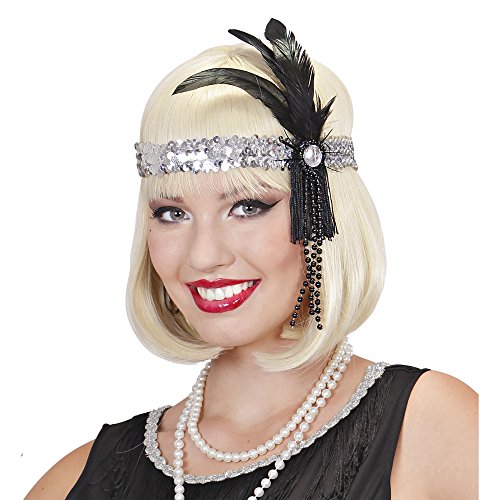 WIDMANN- Fascia Charlestone con Paillettes, Colore Nero e Argento, One Size, 9096H