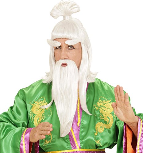 WIDMANN S6938 - Parrucca con Barba, Baffi e Sopracciglia da Vecchio Cinese, Bianca, in Taglia Unica