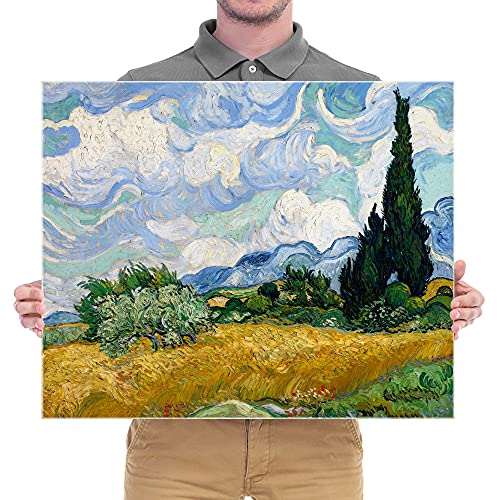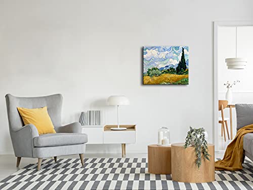 Wieco Art - Campo di grano con cipressi di Van Gogh Classic oil Paintings Reproduction Modern Giclee stampe su tela opera di paesaggio su tela con cornice Wall Art per soggiorno Home Office