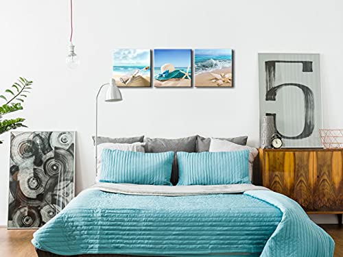 Wieco Art 3 pannelli con immagine di stelle marine conchiglie spiaggia arte su tela da parete stile moderno paesaggio marino teso e incorniciato per camera da letto casa ufficio decorazioni