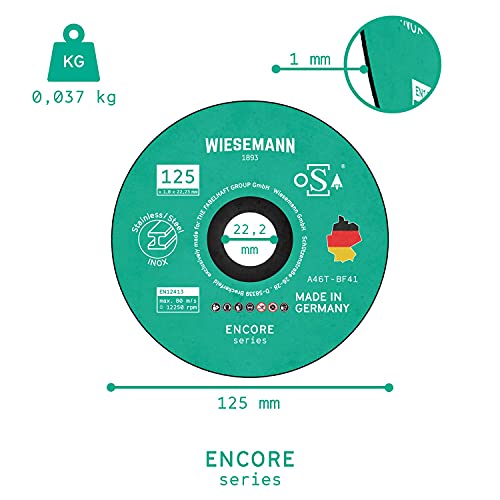Dischi da taglio - Confezione da 5 dischi da taglio extra sottili 125 x 1, 0 x 22,23 mm della serie ENCORE di WIESEMANN 1893.