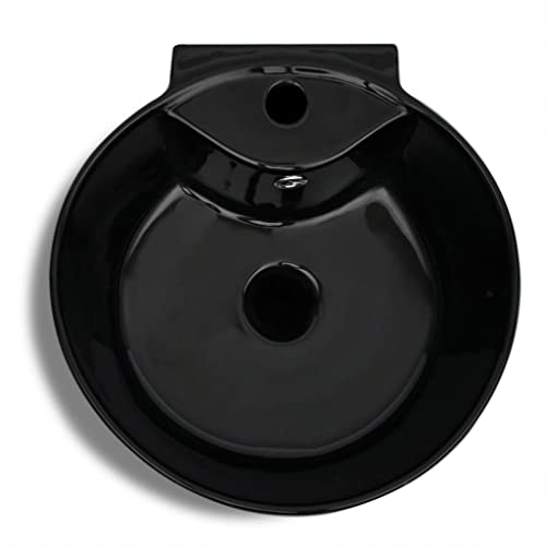 WIFESE Lavandino Bagno in Ceramica Nera Rotondo con Foro per Rubinetto/Trabocco Lavabo Bagno Sospeso Lavandino Da Appoggio Lavabo Da Appoggio Lavatoio Ceramica Lavandino Bagno Sospeso 40x41,5x86 cm