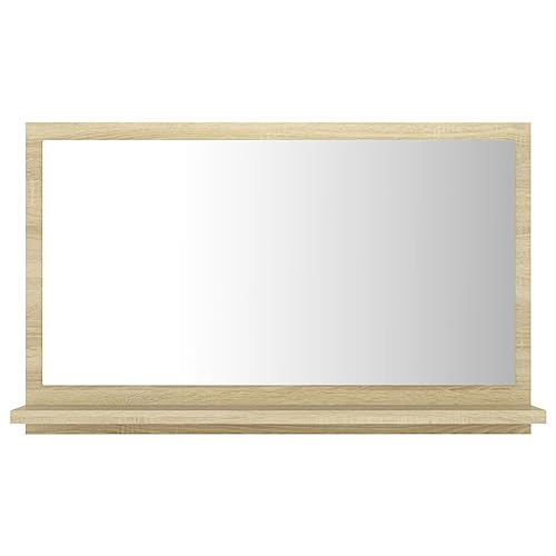 WIFESE Specchio da Bagno Rovere Sonoma 60x10,5x37 cm in Truciolato Specchio Bagno Con Mensola Specchio Bagno Specchio Parete Specchiera Bagno Con Contenitore Stile Moderno Elegante E Funzionale