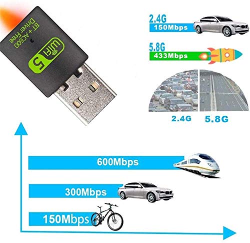 WiFi Bluetooth Adattatore USB per PC, Dongle Mini Wireless 600mbps Dual Band 2.4/5.8GHz Adattatore Bluetooth USB Scheda di Rete Ricevitore WiFi per Laptop Desktop Win10 / 8/8.1/7