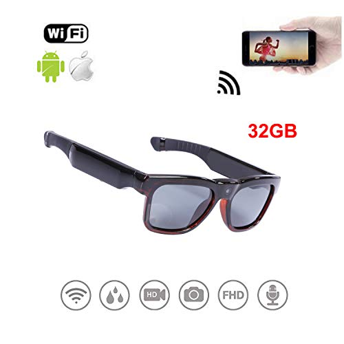 WiFi Live Streaming Video Sunglasses, Streaming Videos & Photos from Glasses to Mobile Phone by App with Ultra Full HD Camera, Built-in 32GB Memory and Polarized UV400 Protection Sunglasses