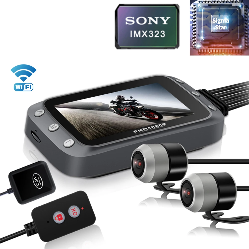 WiFi Motorcycle DVR 2*1080P Full HD Front Rear View Dash Cam Waterproof Motorcycle Camera GPS Logger Recorder Box Motorbike DVR