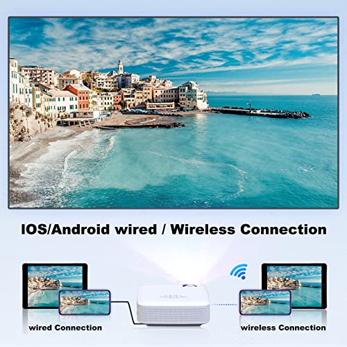 【Wi-Fi connessione】Il mini proiettore ha funzione WiFi e funzione di specchio dello schermo, è possibile collegare direttamente il proiettore direttamente tramite Wi-Fi, anche se non c'è un ambiente WiFi, è possibile utilizzare direttamente il cavo dati USB per collegare dispositivi Android o IOS, senza bisogno di acquistare altri adattatori.