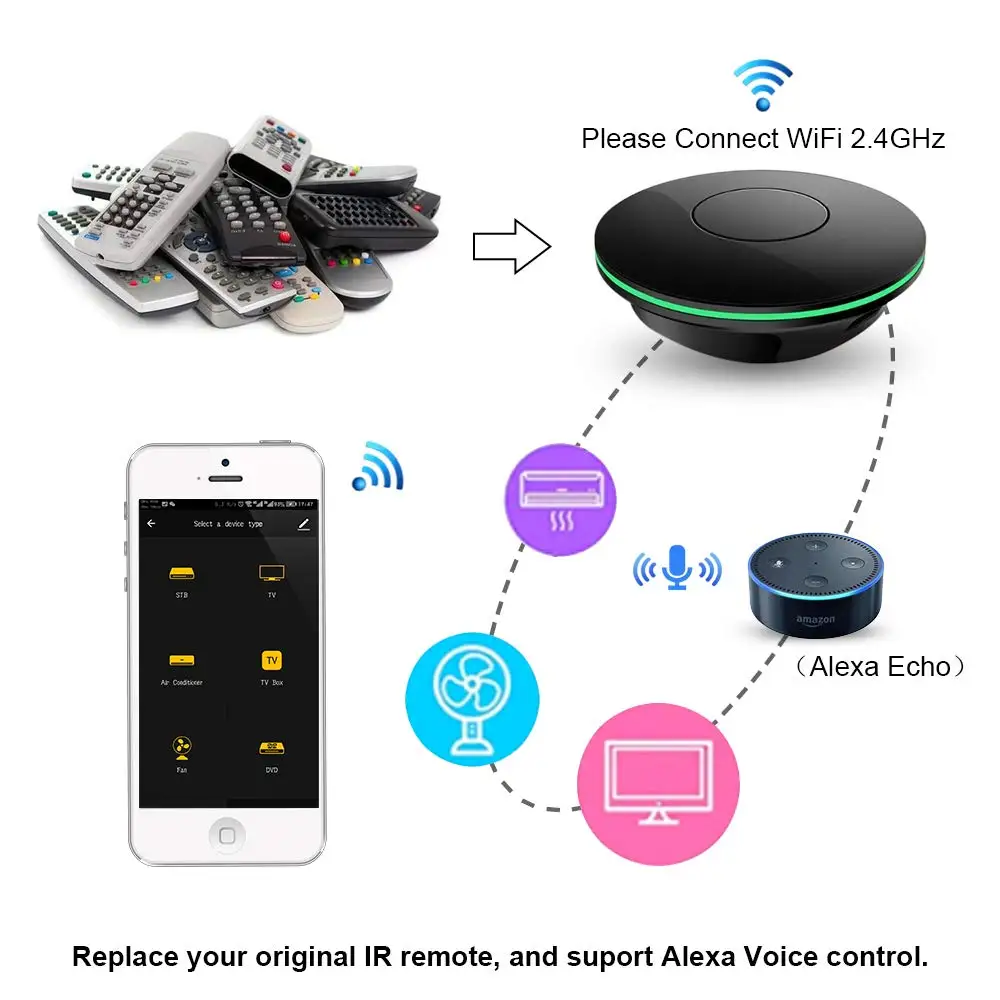 Wifi Smart Ir Control Air Condition TV Box Fan TV Universal Remote Controller App Smart Life Compatible For Google Alexa IFTTT