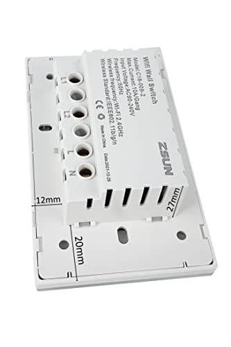 Parametro tecnico. Frequenza wireless: Wi-Fi 2.4GHz. Standard wireless: 802.11b/g/n 2.4G. Tensione nominale: AC100V-240V 50/60Hz. Temperatura di lavoro: -10℃~40℃. Ampere: 10A/Gang. Dimensioni: 118 mm x 72 mm. Materiale: guscio ignifugo. Materiale del pannello: vetro temperato. Supporto app: IOS/Android. Lampade applicabili: lampada a incandescenza, lampada a risparmio energetico, lampada a LED, etc.