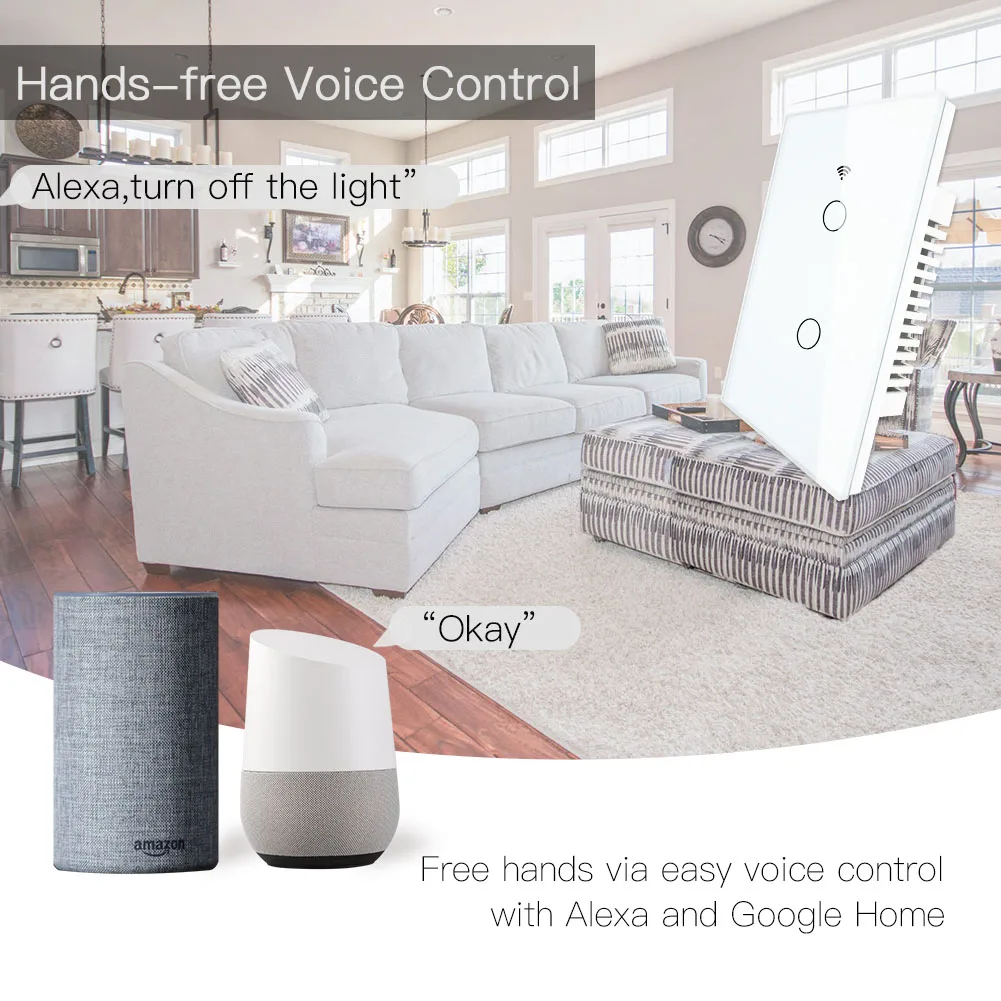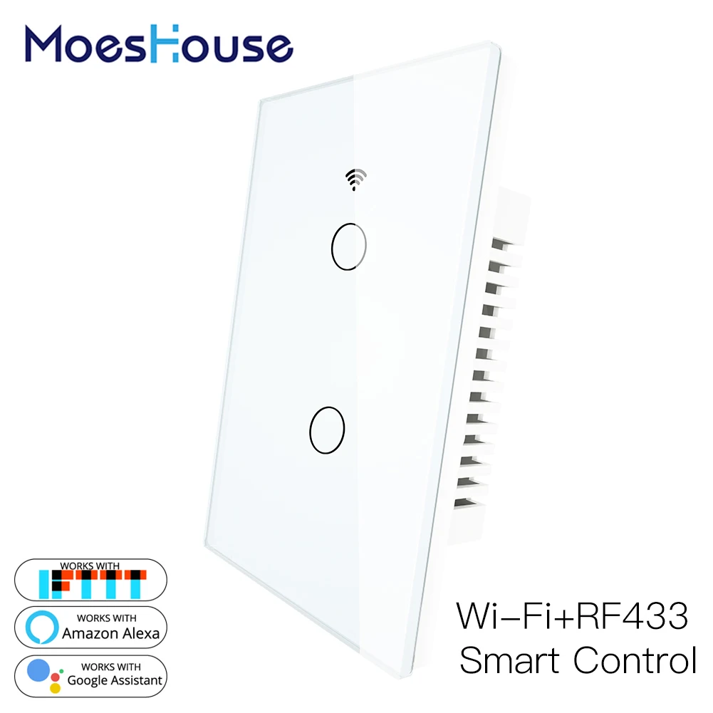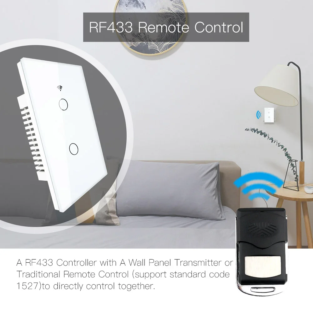 WiFi Smart Wall Light Switch RF 433Mhz Wireless Glass Panel Smart Life Tuya APP Remote Control Works With Alexa Google Home