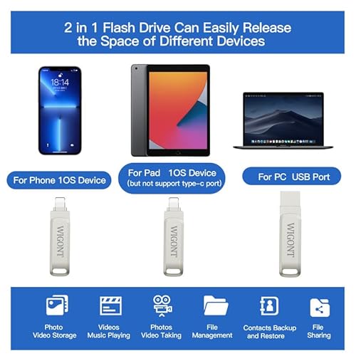 【Chiavetta USB 64 GB con Trasferimento USB 3.0 ad Alta Velocità】WIGONT la chiavetta USB per i Phone supporta la porta USB 3.0, ha alta velocità e stabilità per trasferire file di grandi dimensioni. Bastone chiavetta USB per i Phone ideale per aggiungere più spazio di archiviazione a laptop, console di gioco, audio in auto e altro ancora.L'i phone 15 non richiede il download di un'applicazion
