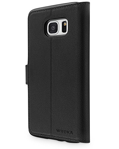 Wiiuka Custodia Travel Away in Vera Pelle per Samsung Galaxy S7 Edge Premium Design Sottile Protezione Color Nero con Slot per schede