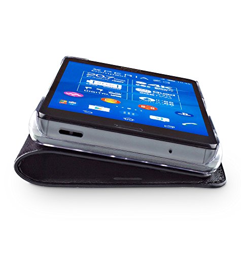 Wiiuka Custodia Travel Away in Vera Pelle per Sony Xperia Z3 Compact Premium Design Sottile Protezione Color Nero con Slot per schede