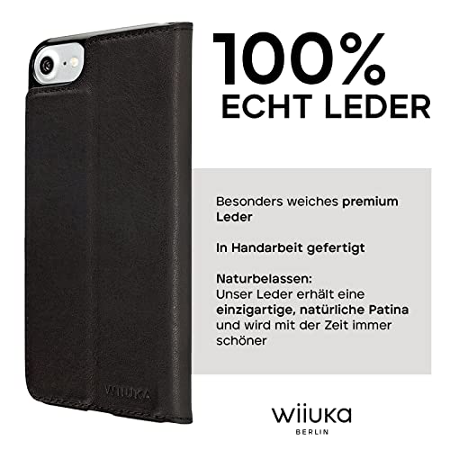 WIIUKA custodia "TRAVEL" in vera pelle per Apple iPhone 6 e iPhone 6S - Premium design a portafoglio, sottile protezione color nero con slot per schede