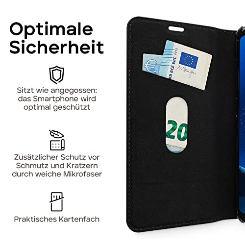 WIIUKA custodia "TRAVEL" in vera pelle per Samsung Galaxy S9 - Premium design a portafoglio, sottile protezione color nero con slot per schede