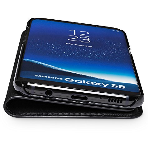 Wiiuka Custodia Travel in Vera Pelle per Samsung Galaxy S8 Premium Design Sottile Protezione Color Nero con Slot per schede